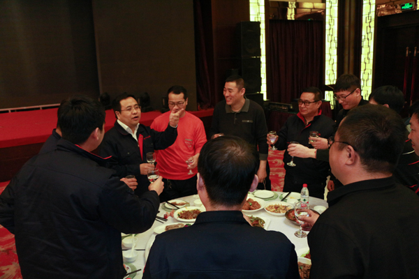 趙松一總裁與一線員工代表,把酒言歡。