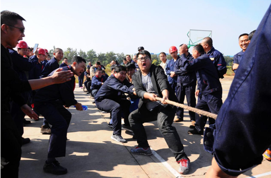 比賽場(chǎng)地設(shè)在辦公樓門(mén)前停車(chē)場(chǎng)。由各車(chē)間為單位,組成的12支代表隊(duì)參加了比賽,其中男隊(duì)8支女隊(duì)4支。比賽采用三局二勝制淘汰賽,每隊(duì)參賽人員 10人,按抽簽分組決定比賽順序。參賽隊(duì)員們個(gè)個(gè)摩拳擦掌、士氣高昂,隨著裁判員一聲哨響,比賽正式開(kāi)始。隊(duì)與隊(duì)之間是一場(chǎng)力量和技術(shù)的較量,上場(chǎng)的兩支參賽隊(duì)伍緊握拔河繩,心往一處想,勁往一處使,拼勁全力,展開(kāi)了實(shí)力拉鋸戰(zhàn)。賽場(chǎng)下,啦啦隊(duì)員們?yōu)樽约褐С值年?duì)伍加油鼓勁,助威聲一浪高過(guò)一浪。隊(duì)員們?cè)谫悎?chǎng)上的精彩表現(xiàn)搏得了現(xiàn)場(chǎng)觀眾的陣陣歡呼,號(hào)子聲、吶喊聲,此起彼伏,高潮迭起,氣氛熱烈。