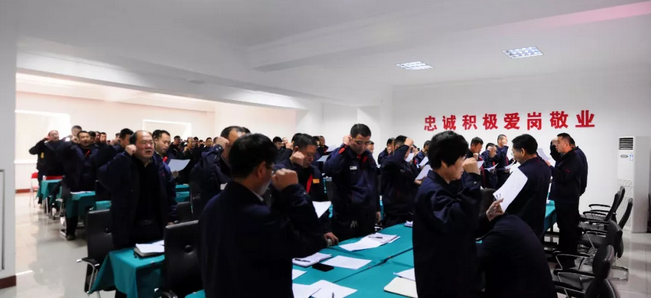 會議最后由左總領(lǐng)誓,全體人員莊嚴宣誓——“我們是光榮的營鋼人!安全生產(chǎn)是我們神圣的職責(zé)!為了自己的安全;為了家人的幸福;為了企業(yè)的發(fā)展。我宣誓:從我做起;遵章守紀!忠誠企業(yè);履行職責(zé)!查處隱患;拒絕違章!規(guī)范操作;警鐘長鳴!珍愛生命;確保安全??!