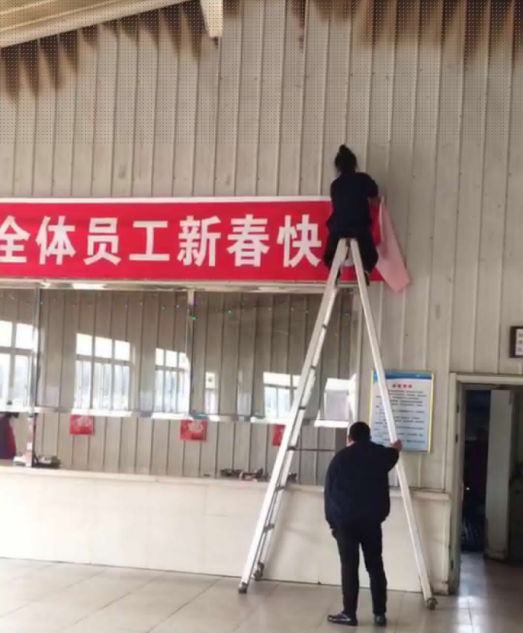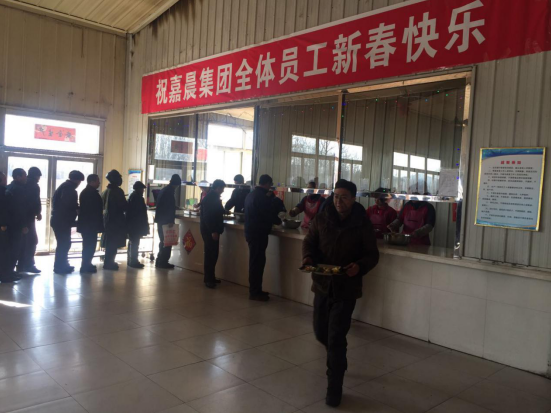 當(dāng)璀璨的煙花在嘉晨上空朵朵綻放之時,公司領(lǐng)導(dǎo)班子一行又來到食堂看望了仍在工作的廚師、服務(wù)員及就餐職工。賈總向大家拜年!并感謝食堂員工為保證集團(tuán)燃化職工度過春節(jié)而精心準(zhǔn)備的可口、精美菜肴。廚師長代表全體廚師及服務(wù)人員,感謝公司領(lǐng)導(dǎo)的關(guān)懷,并表示,要發(fā)揚不怕苦、不怕累的嘉晨精神,為了全體職工能過好春節(jié)而努力工作,食堂員工耿艷為了給不能回家過年的職工營造家的感覺,爬上高梯,精心打扮食堂,讓回不了家的職工感受到家的溫暖、嘉晨的愛意!