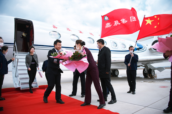 接機儀式上,嘉晨集團董事長孫壽寬致辭。嘉晨集團是我市本土成長起來的全國知名500強企業(yè)。創(chuàng)新能力強,發(fā)展?jié)摿Υ螅a(chǎn)品質(zhì)量好,近年來,無論鐵礦石、原煤等原材料的進口,還是“超純鎂砂”高科技產(chǎn)品的出口,僅每年國際貿(mào)易所產(chǎn)生的經(jīng)濟價值已遠遠超越飛機價值本身。孫壽寬表示,在社會需要的特殊時期,作為本地民營企業(yè),飛機也可以第一時間用于支持火線馳援等,為全社會提供更多力所能及的幫助。