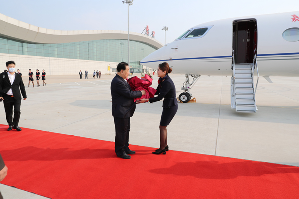 4月30日7時30分,嘉晨集團(tuán)董事長孫壽寬先生及隨行人員乘車抵達(dá)營口蘭旗機場,開啟了嘉晨集團(tuán)首架公務(wù)機(灣流650型)首航之旅。在完成安檢流程后,孫壽寬董事長一行緩步走向停機坪,機組人員向董事長及隨行人員親切握手,敬獻(xiàn)鮮花并合影留念。8時飛機準(zhǔn)時起飛。此次飛行將在一天內(nèi)抵達(dá)中國東部及南部多座城市,以公務(wù)機的靈活便捷優(yōu)勢為嘉晨集團(tuán)業(yè)務(wù)版圖擴展提供強大動力。