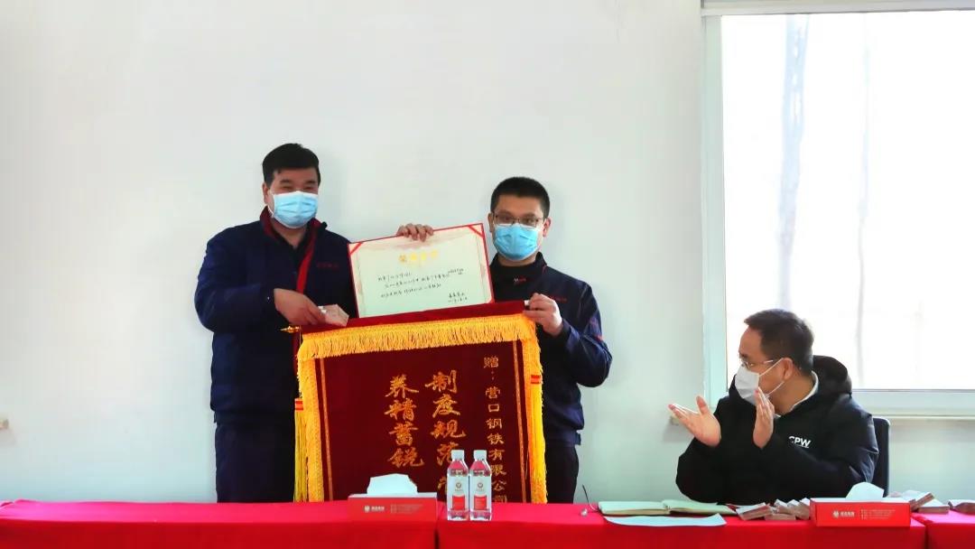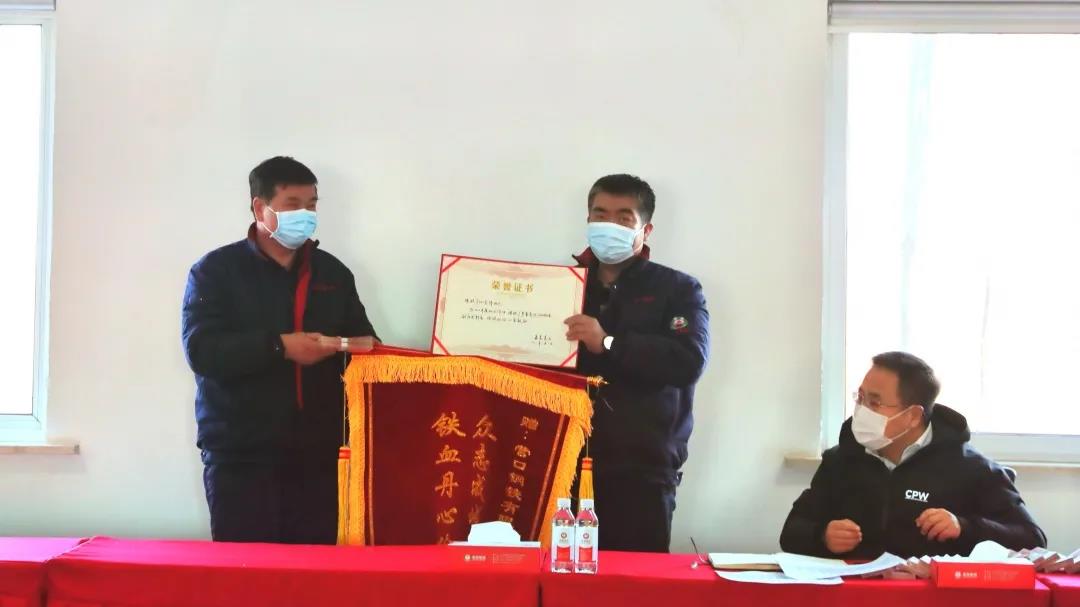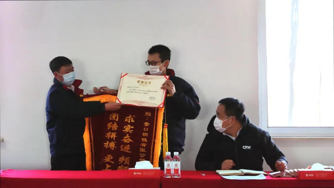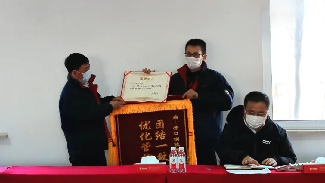 張總為煉鐵廠頒發(fā)錦旗和榮譽證書